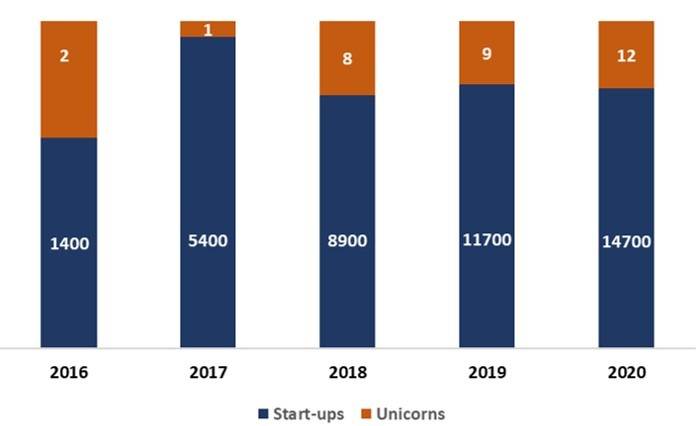 • Even in the COVID-19 pandemic, the startup ecosystem continued to remain bullish in India with the addition of 14,700 new entities in 2020.